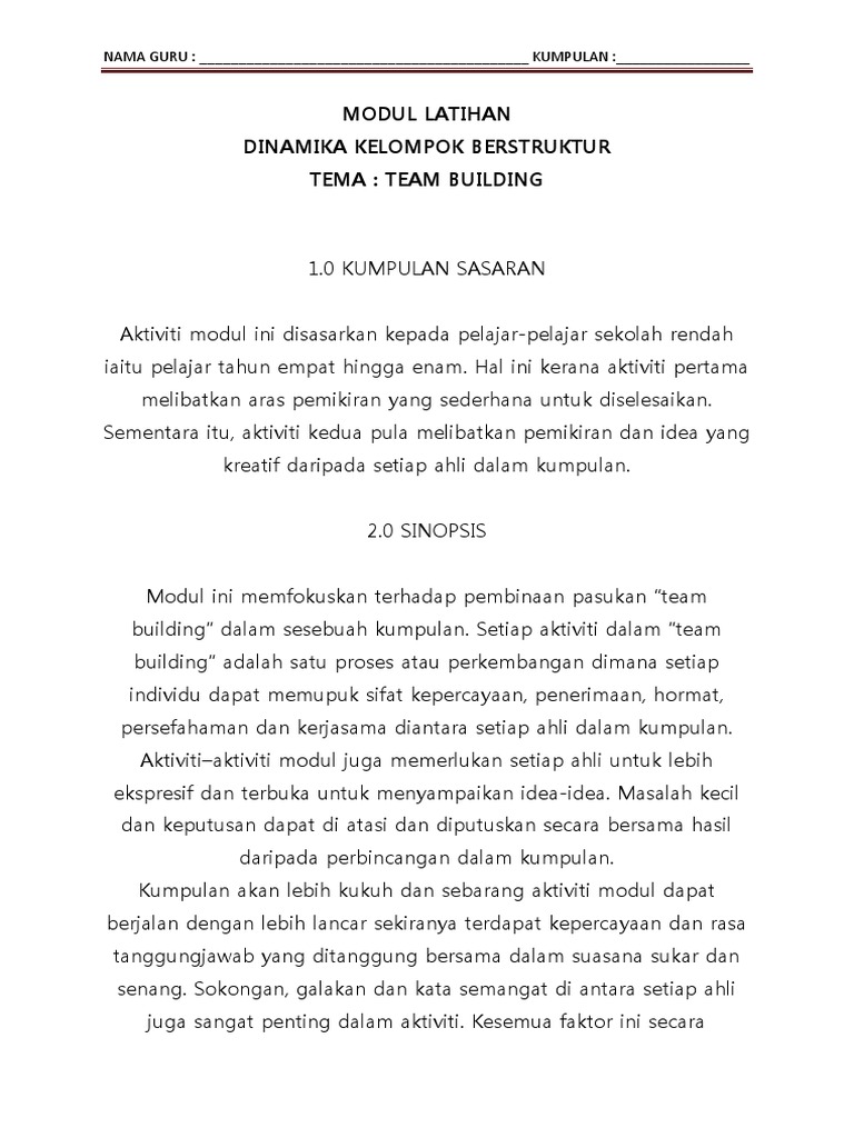 Modul Lab 2 Team Building from imgv2-2-f.scribdassets.com These awesome team building activities will actually be fun and useful, so go ahead — pick a few favorites and get started! Peralatan peralatan / bahan : Percaya atau tidak, aktiviti team building yang best dan menyeronokkan dapat meningkatkan produktiviti sesebuah organisasi. Dans cet article l'auteur s'interroge sur la pertinence des activités de team building, et suggère quelques quelques conseils opérationnels : The very success of an organization depends on the ability of its employees to work as a team, understand each other's strengths as well as. Padahal, aktivitas team building ini punya banyak manfaat, baik bagi karyawan maupun perusahaan, seperti Team building is a collective term for various types of activities used to enhance social relations and define roles within teams, often involving collaborative tasks. Taking employees out of the office helps groups break down political and.