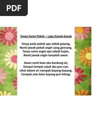 Lirik Lagu Tanya Sama Pokok from imgv2-1-f.scribdassets.com Lagu kanak kanak melayu malaysia kalau rasa gembira if you are happy and you know it in malay. Tanya sama pokok versi rock. Lagu kanak kanak best tanya sama pokok. Kompilasi lagu baru didi amp friends untuk kanak kanak goyang goyang zombi amp lain lain 30 minit. For your search query lagu kanak kanak tanya sama pokok mp3 we have found 1000000 songs matching your query but showing only top 10 results. Lagu kanak kanak kids song goyang goyang muzikakanakkanak. Lagu tanya sama pokok full version with lyrics. Lagu kanak tv 30 november 2019.