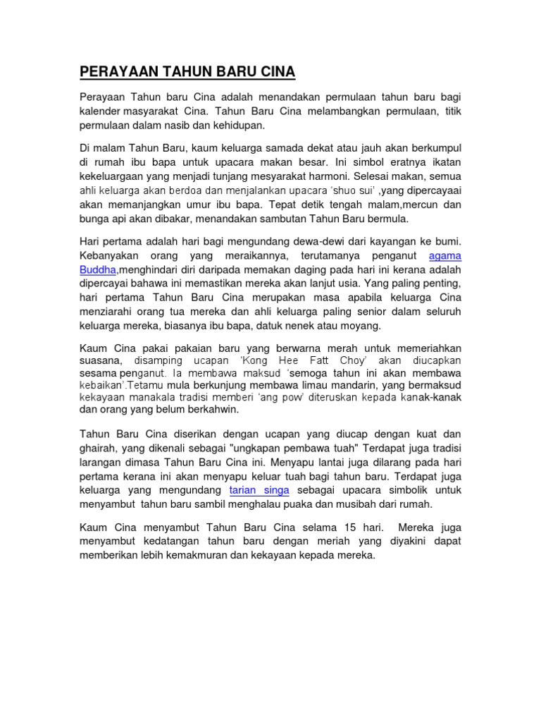 Aktiviti malam sebelum tahun baru cina.bermain mercun.menurut kepercayaan kaum cina, bunyi mercun yang kuat boleh. 10 fakta perayaan tahun baru cina kenapa tanggal tahun baru. Tahun baru cina sememangnya disambut dengan meriah pada setiap tahun. Namun, untuk perayaan tahun baru cina yang akan disambut esok, sebagai seorang muslim, kita perlu tahu perkara yang 'perlu' dan 'tidak perlu' itu taboo untuk masyarakat cina terutamanya pada tahun baru cina. Tahun baru cina turut dikenali sebagai spring festival kerana hadir dalam musim bunga dan di tetapkan berdasarkan kalendar lunar cina.