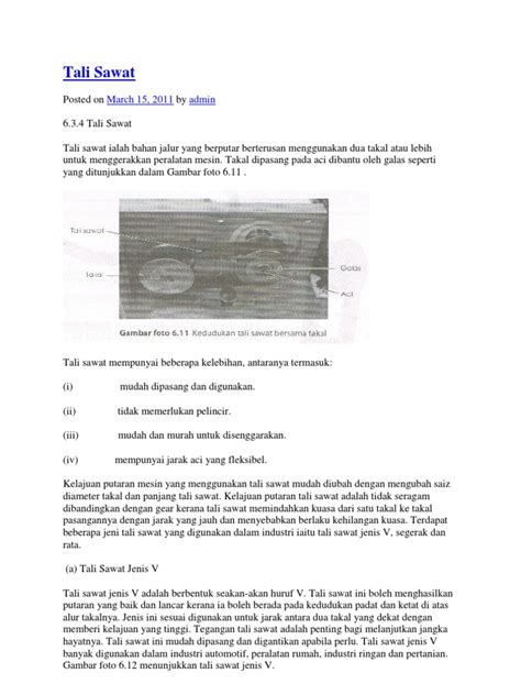 T5 bab 3 sistem( 8 17) from image.slidesharecdn.com Penghantar kuasa dan penggerak mesin. Satu motor, tali sawat getah sentiasa bergerak ke atas di antara dua takal. Kelajuan rendah tali sawat pada takal dipacu akan dipasang pada takal yang berdiameter besar. Mempunyai dua roda berlurah yang dipasang pada aci dan dihubungkan dengan tali sawat. Kebanyakan traktor kecil bagi kegunaan rumah dan taman menggunakan sistem cvt hidrostatik atau tali sawat getah yang mudah. Takal pemacu berputar maka takal pengikut berputar mengikut arah putaran yang sama kecuali tali sawat disongsangkan. Motor,gear, tali sawat dan takal. Jenis ini mempunyai gigi pada sebelah dalam dan juga menggunakan takal yang bergigi sebagaimana pada gambar foto 6.13.